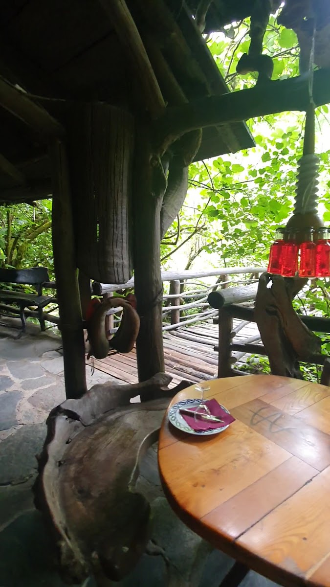 Mindblowing restaurant where every single piece of furniture has been sculpted with local wood. Wonderful food with local product, and top meat grilled on a handmade oven on the terrace.