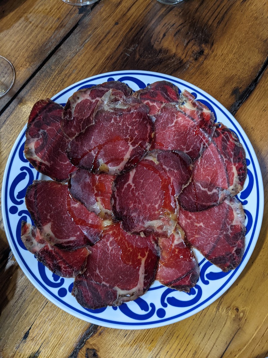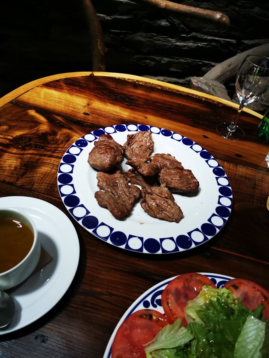 The road there (depending from where youre coming) is a 40mins. Drive up the mountains, sorounded by beautiful mountains and nature, excellent route for motorcycle escape in summer.... Once you get there you will find a centenary chessnut tree in front of a small river that welcomes you to the parking lot... When you get inside the house you will be amazed with all the furniture and decoration hand made by the owner... Wood working skills at is best! Its quite eclectic mixed with a bit of modern trying to keep the scense of the zone... You will eat with the sound of the river in an very peaceful and cozy place where the owner and his daugther will take care of you like if you were part of the family. Stone grilled veal is the only item on the menu, served with a fresh letucce, tomato and onions salad dressed with organic extra virgin olive olive from the area and home made balsamic vinegar... The house wine is fruity and tasteful with great body! House desserts (if you still have space for it) is quite simple, yet good... Definetely a place that worth the ride... Super friendly, peaceful and cheap! Dont hesitate one minute to go... But remember to call to reserve table!